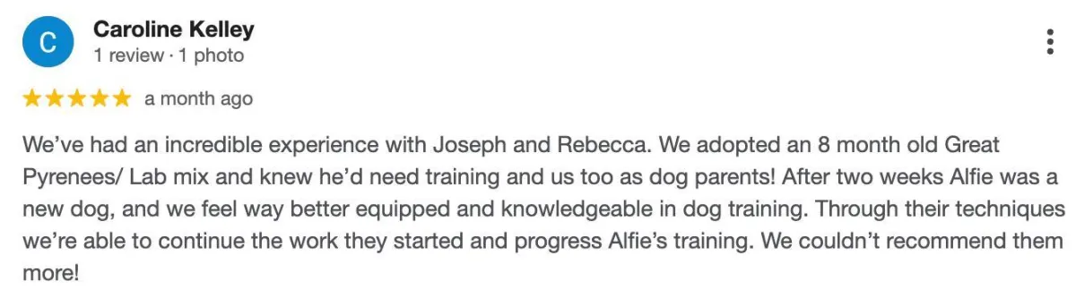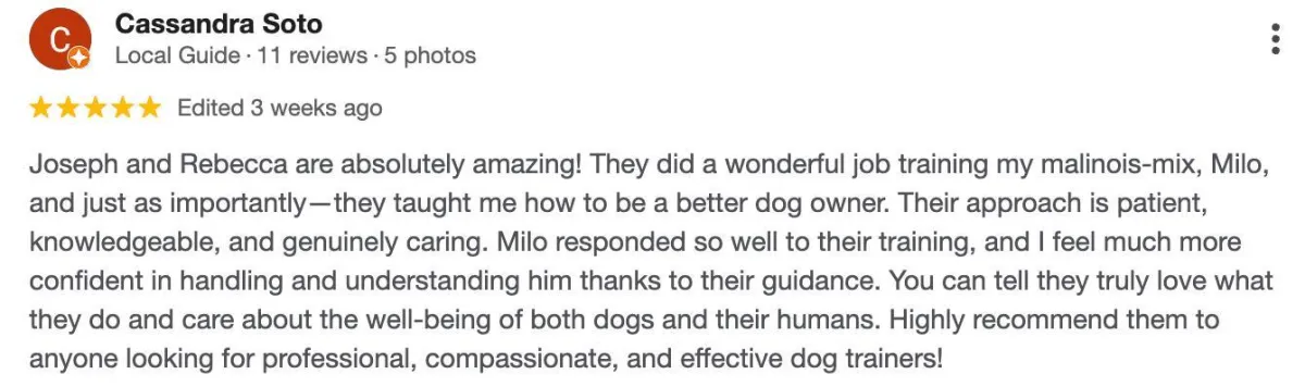 🐾 Next-Step Training Recommendations If we’re the right fit, you’ll know exactly what comes next to turn your dog into the well-behaved pet you’ve always wanted.